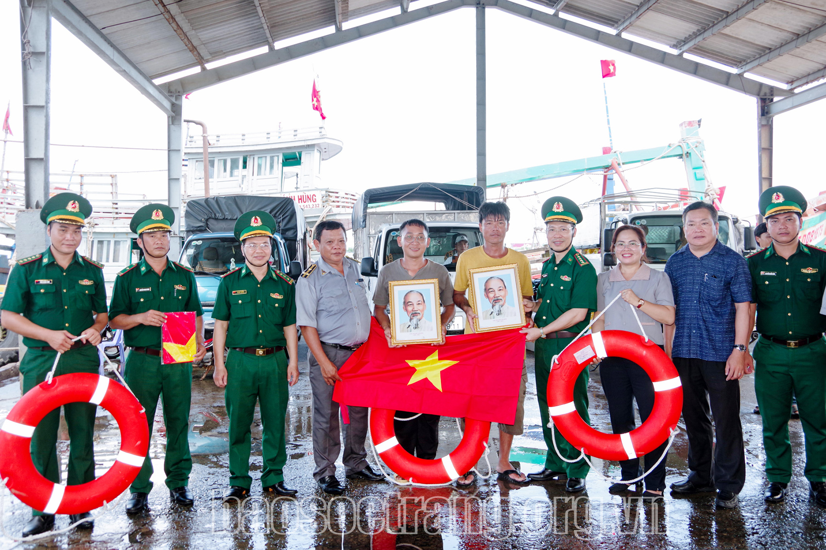 Dịp này, Bộ đội Biên phòng tỉnh cũng đã trao tặng tủ thuốc biên phòng, ảnh Bác Hồ, cờ Tổ quốc và phao cứu sinh cho các ngư dân.