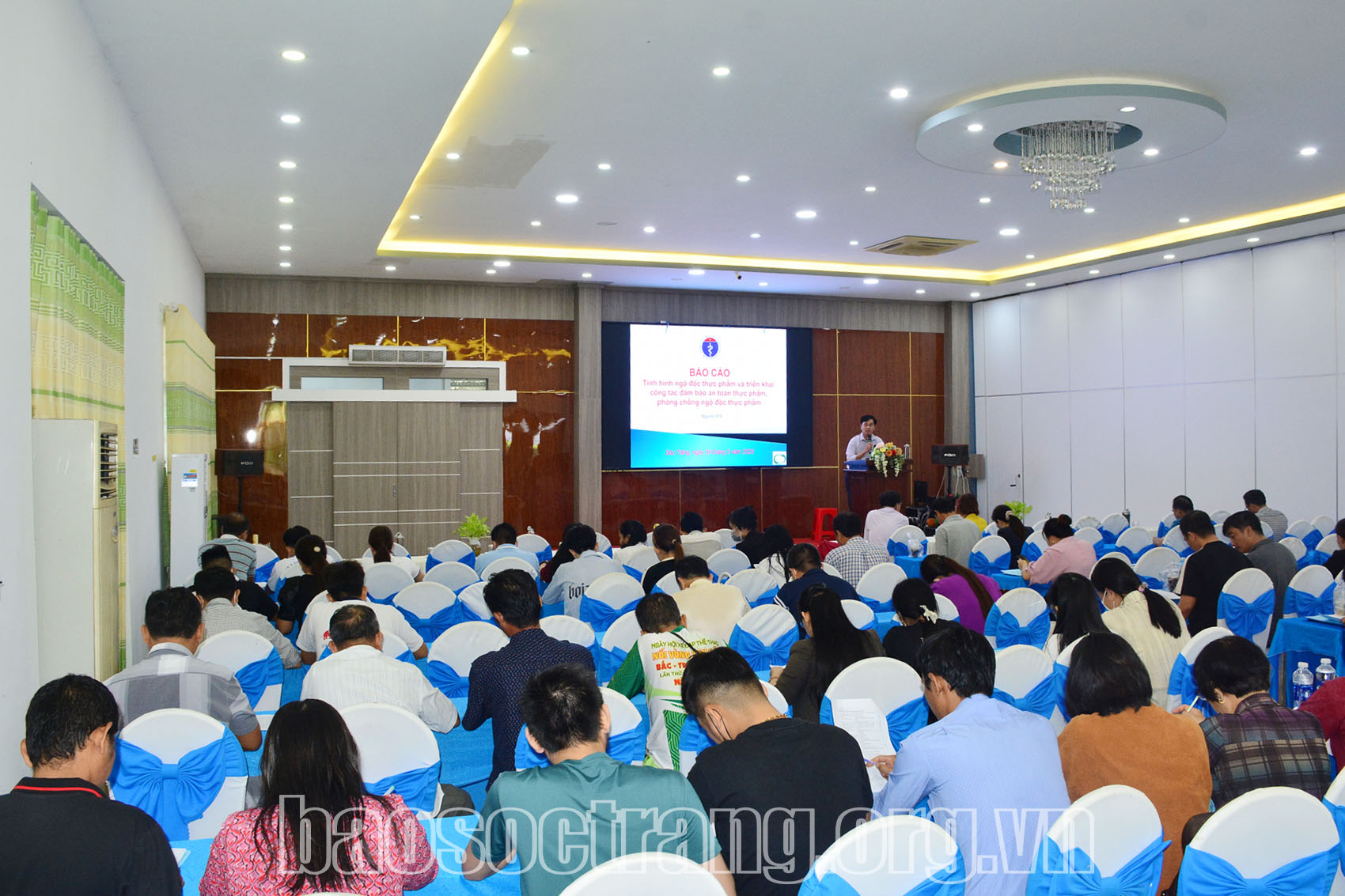 | Lớp tập huấn nhằm cung cấp kiến thức cơ bản về quản lý và chế biến thực phẩm cho các đơn vị kinh doanh dịch vụ ăn uống trên địa bàn tỉnh Sóc Trăng. Ảnh: HOÀNG PHÚC |
