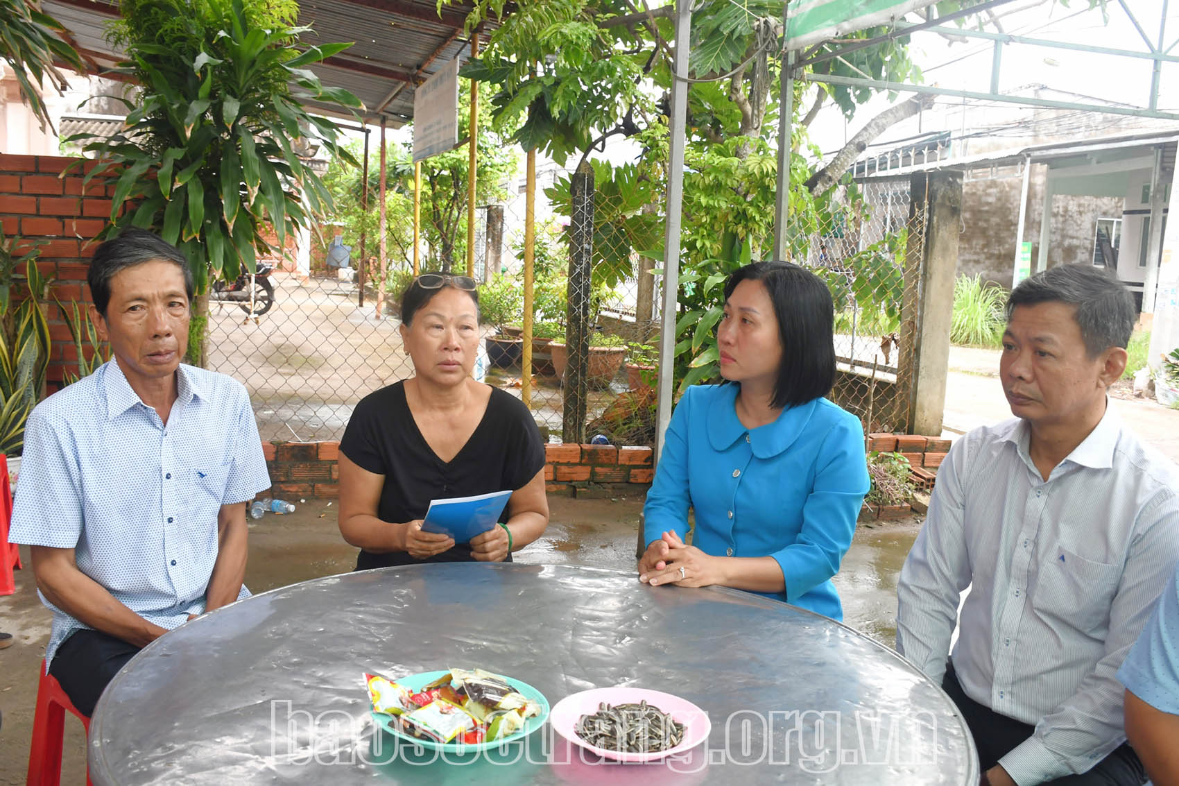 | Đồng chí Trịnh Thị Bảo Khuyên - Phó Chủ tịch Liên đoàn Lao động tỉnh Sóc Trăng cùng các đơn vị liên quan đến thăm hỏi, chia buồn cùng gia đình anh P. Ảnh: HẢI HÀ |