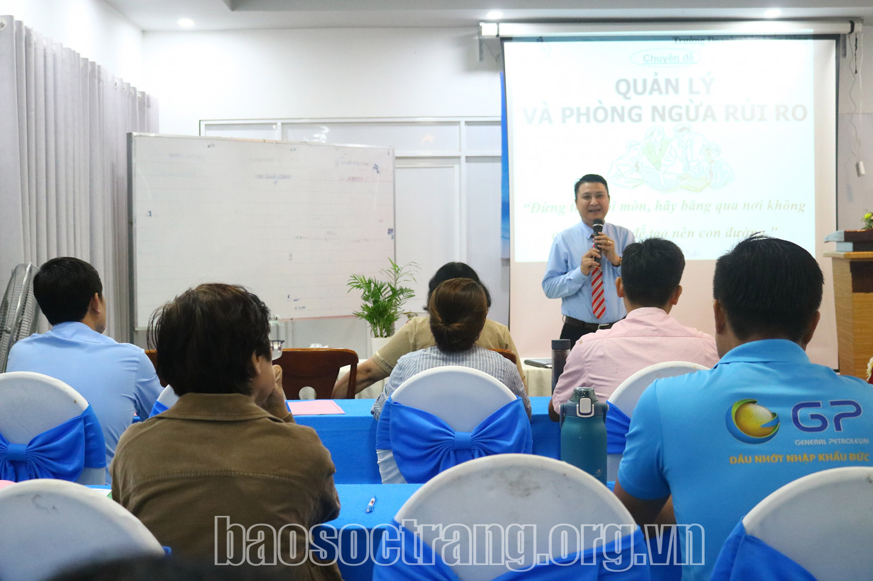 Bà Mã Thị Thanh - Phó Chủ tịch Hiệp hội Doanh nghiệp tỉnh Sóc Trăng chia sẻ, trong tình hình kinh tế biến động, rủi ro trong hoạt động kinh doanh là điều khó tránh khỏi. Trong thời gian qua, có những doanh nghiệp trên địa bàn tỉnh Sóc Trăng nhờ trang bị kiến thức quản lý rủi ro, đào tạo bài bản, tích lũy kinh nghiệm xử lý rủi ro đã vượt qua những giai đoạn kinh tế khó khăn, khủng hoảng vào thời điểm xảy ra dịch bệnh Covid-19, khủng hoảng tài chính... Chỉ khi các doanh nghiệp hiểu được rủi ro thì mới có biện pháp dự phòng, xử lý hiệu quả, qua đó giúp doanh nghiệp nâng cao năng lực hoạt động, tạo đà phát triển bền vững.