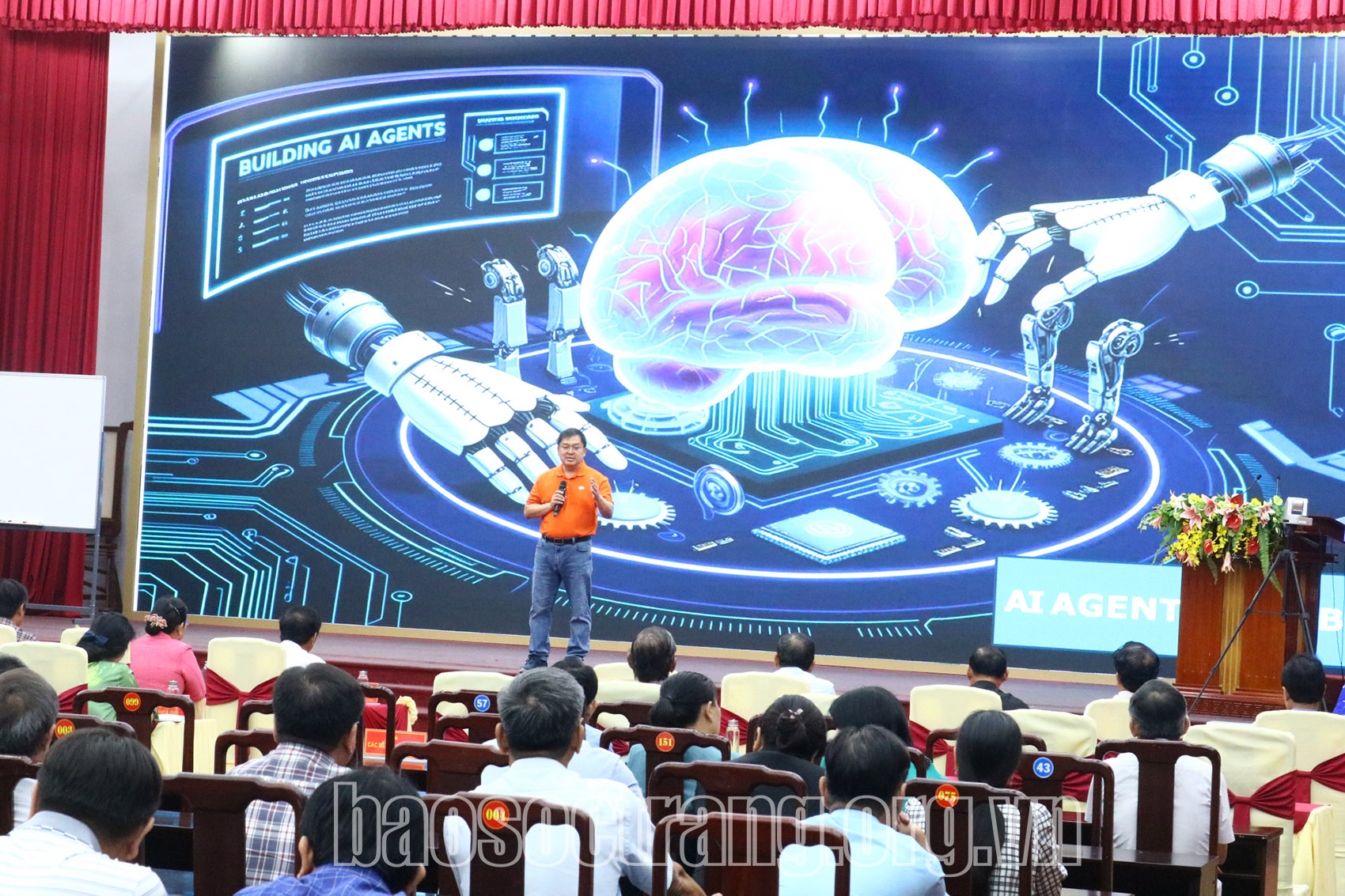 Trao đổi về nội dung Chuyển đổi số và trí tuệ nhân tạo trong công tác lãnh đạo quản lý, ông Hoàng Nam Tiến cho rằng, chiến lược phát triển trong thời đại AI là chuyển đổi số, chuyển đổi thông minh, chuyển đổi hạ tầng và chuyển đổi tư duy nhà lãnh đạo. Phải xem AI như người đồng hành để thay đổi hoạt động, thay đổi năng lực, kỹ năng. Hiện nay có nhiều công cụ mới cần phải học và phải học tập mỗi ngày để làm chủ AI. Ngoài ra, việc cần thiết trong thời đại công nghệ 4.0 là “xóa mù AI”, phổ cập kiến thức, kỹ năng AI cho cán bộ, công chức trên nền tảng công nghệ số…
