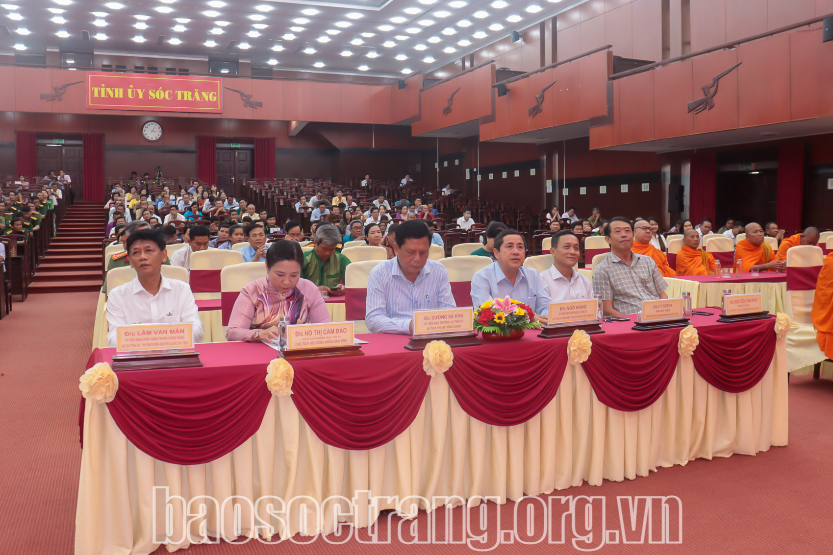 Dự họp mặt có các đồng chí: Lâm Văn Mẫn - Ủy viên Ban Chấp hành Trung ương Đảng, Bí thư Tỉnh ủy, Trưởng Đoàn đại biểu Quốc hội tỉnh; Hồ Thị Cẩm Đào - Phó Bí thư Thường trực Tỉnh ủy, Chủ tịch HĐND tỉnh; Sơn Phước Hoan - nguyên Thứ trưởng, Phó Chủ nhiệm Ủy ban Dân tộc; Ngô Hùng - Ủy viên Ban Thường vụ Tỉnh ủy, Chủ tịch Ủy ban Mặt trận Tổ quốc Việt Nam tỉnh; Dương Sà Kha - Ủy viên Ban Thường vụ Tỉnh ủy, Bí thư Thị ủy Vĩnh Châu; Hòa thượng Tăng Nô - Phó Pháp chủ Hội đồng chứng minh Trung ương Giáo hội Phật giáo Việt Nam, Trưởng Ban trị sự Giáo hội Phật giáo Việt Nam tỉnh, Hội trưởng Hội Đoàn kết sư sãi yêu nước tỉnh; các đồng chí trong Ban Thường vụ Tỉnh ủy, Ban Chấp hành Đảng bộ tỉnh; lãnh đạo các sở, ban ngành tỉnh; các vị chức sắc, cán bộ, công chức, viên chức, người có uy tín vùng đồng bào dân tộc thiểu số trên địa bàn tỉnh.