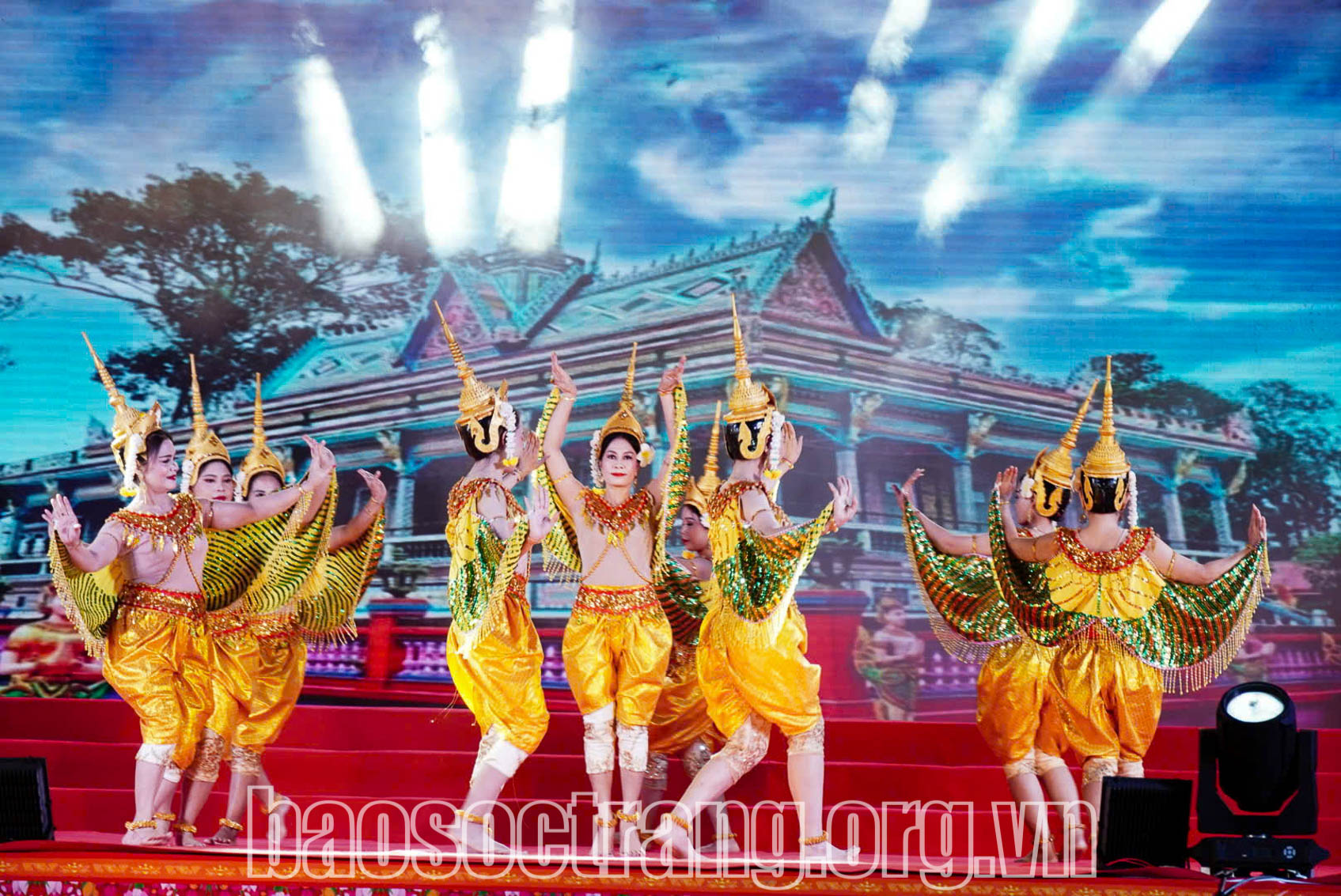 | Tiết mục văn nghệ do Đoàn Nghệ thuật Khmer tỉnh Sóc Trăng biểu diễn. Ảnh: THẠCH PÍCH |