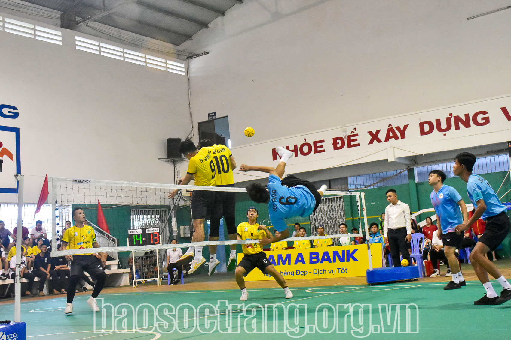 | Pha tấn công của tuyển cầu mây Sóc Trăng tại Giải vô địch cúp câu lạc bộ quốc gia được tổ chức trên sân nhà Sóc Trăng. Ảnh: PON LƯ |