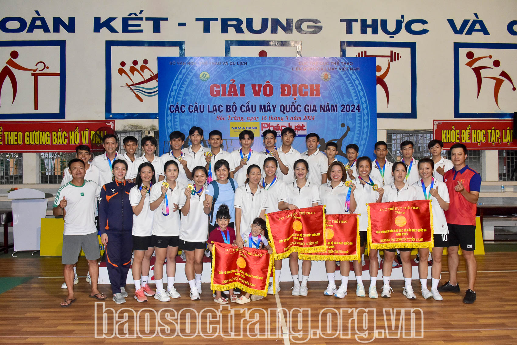 | Niềm vui giành cúp và huy chương của tuyển cầu mây Sóc Trăng tại Giải vô địch câu lạc bộ quốc gia trên sân nhà Sóc Trăng. Ảnh: PON LƯ |