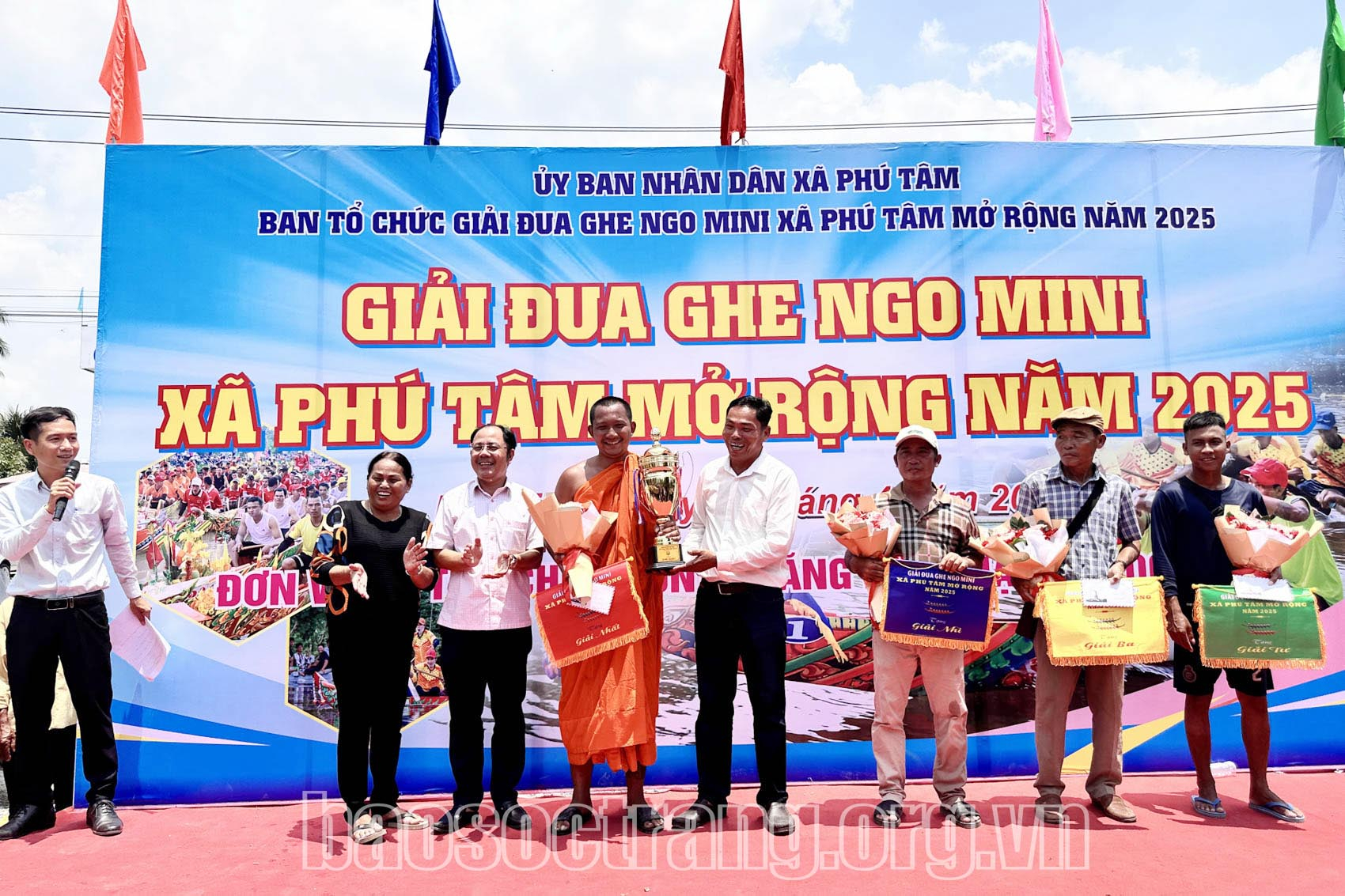 | Ban Tổ chức trao cúp, cờ và giải thưởng cho các đội đạt thành tích cao. Ảnh: THẠCH PÍCH |