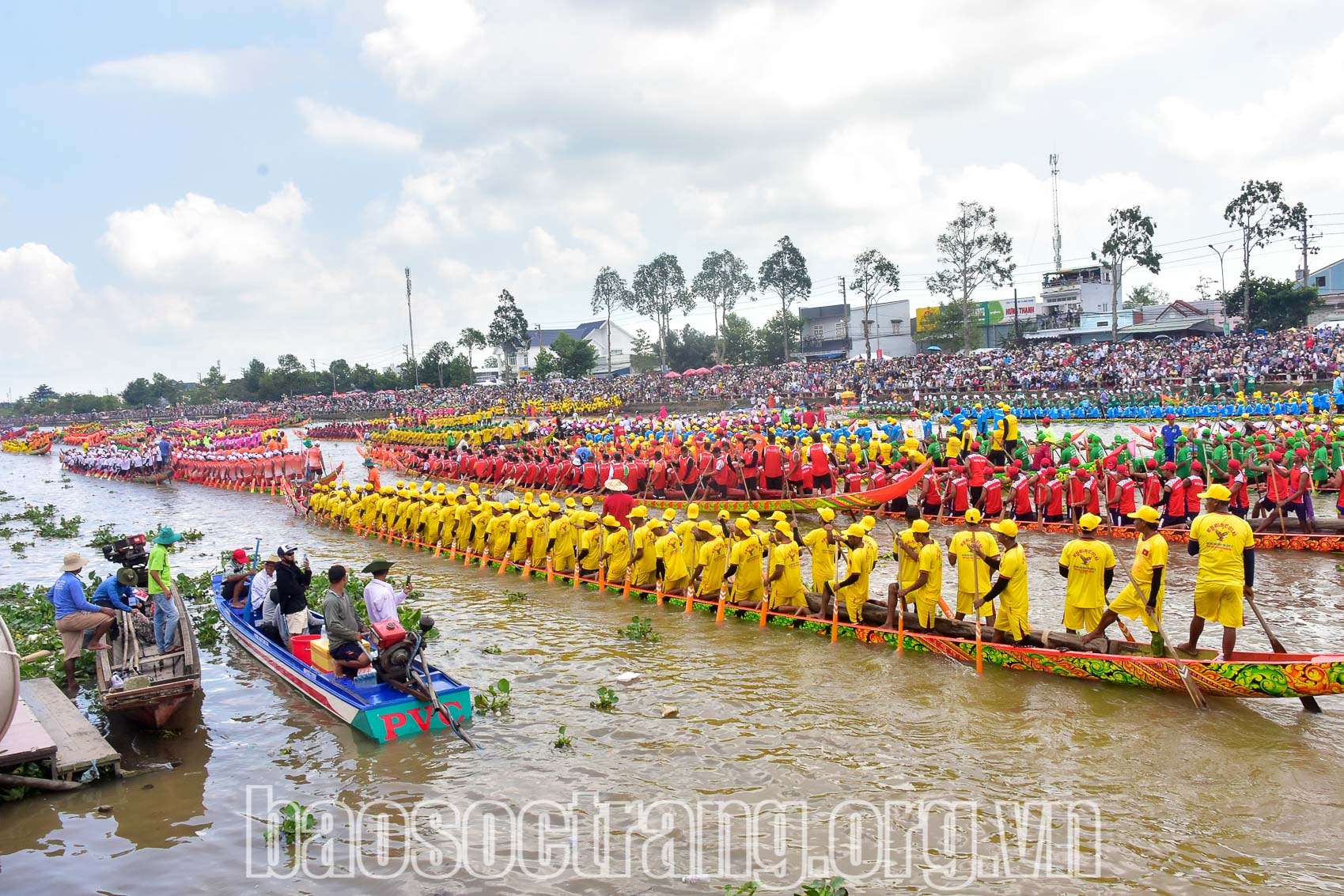 | Đua ghe Ngo là hoạt động thể thao truyền thống của đồng bào Khmer, thu hút đông đảo vận động viên tham gia thi đấu. Ảnh: THẠCH PÍCH |