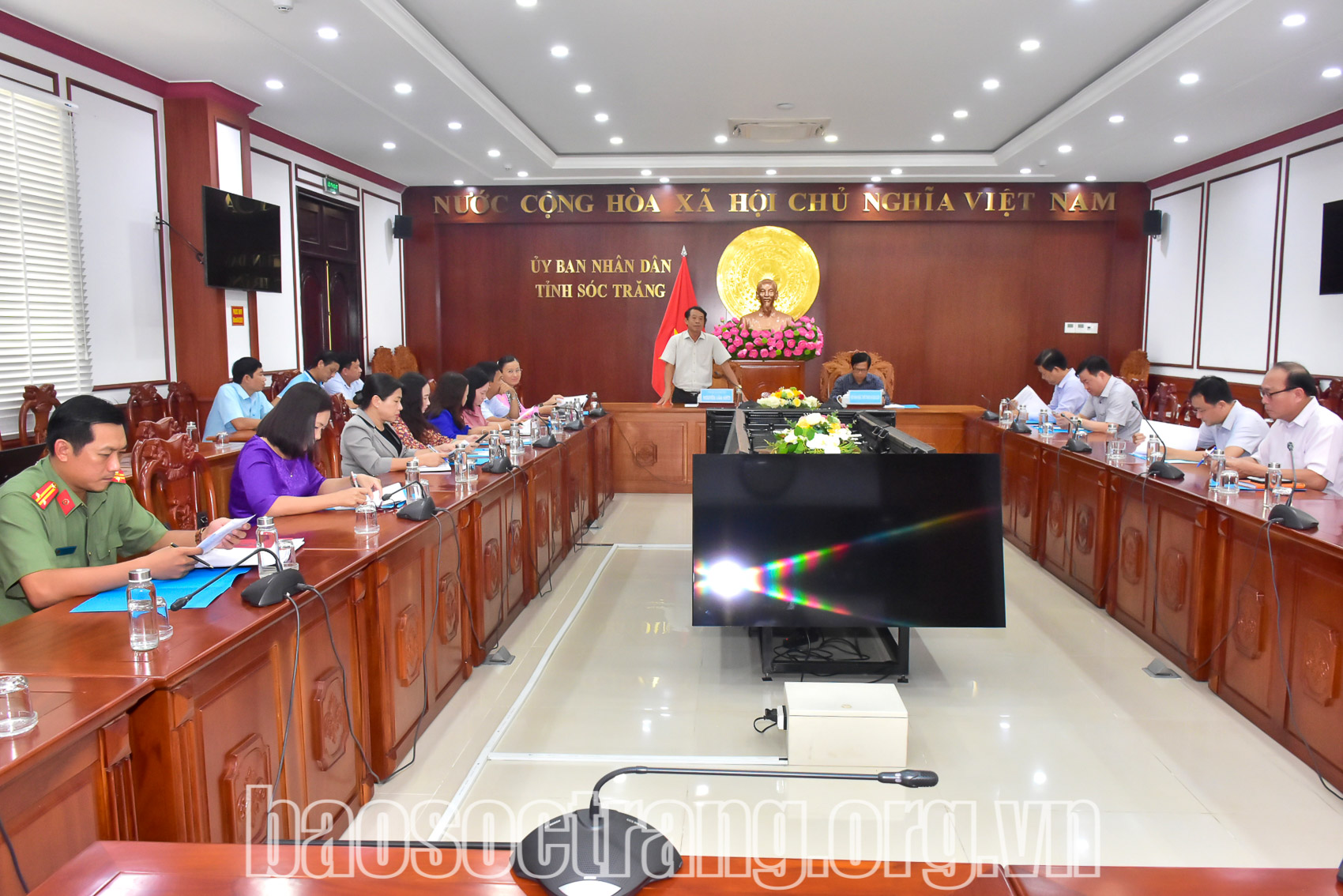 | Đồng chí Nguyễn Văn Khởi - Tỉnh ủy viên, Phó Chủ tịch UBND tỉnh Sóc Trăng phát biểu tại cuộc họp. Ảnh: THẠCH PÍCH |
