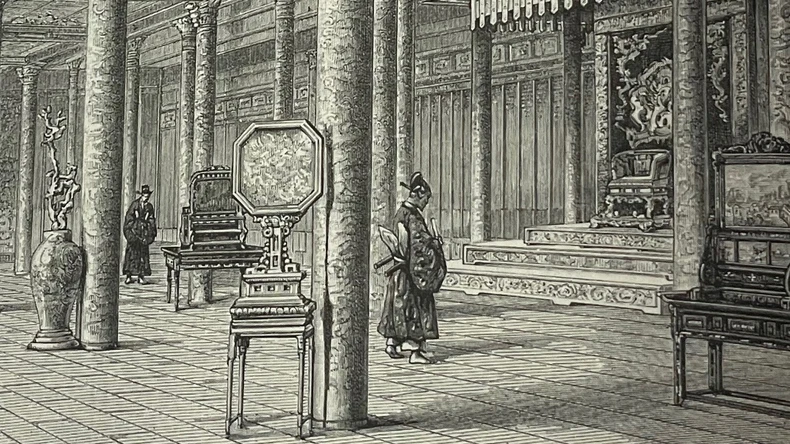 Trong cuốn “Một chiến dịch ở Bắc Kỳ”, bác sĩ Charles Edouard Hocquard có mô tả về Ngai vàng trong chuyến đi Huế.