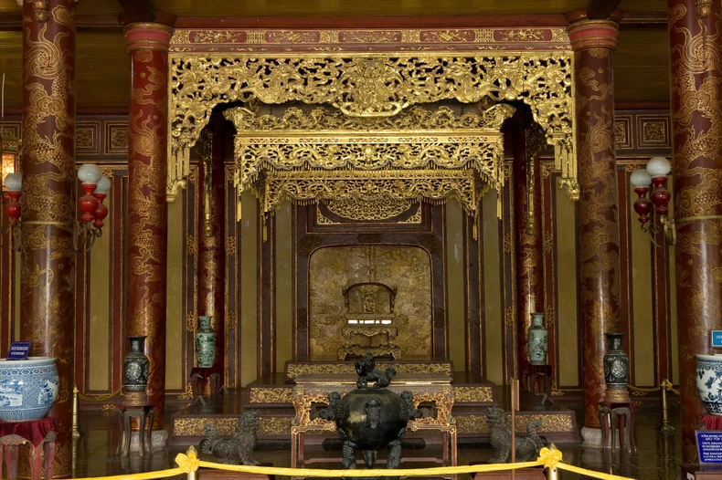 | Ngai vàng trong Điện Thái Hòa. (Ảnh tư liệu trong Hồ sơ của Cục Di sản văn hóa) |