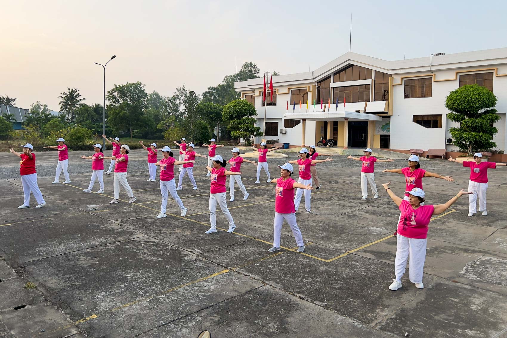 Vào mỗi buổi sáng tại khuôn viên trụ sở thị trấn Mỹ Xuyên, người dân lại tập trung tham gia các bài tập thể dục dưỡng sinh. Đây là môn thể dục nhẹ nhàng, giúp người tham gia duy trì sức khỏe. Đặc biệt, người cao tuổi rất yêu thích hoạt động này, coi đây là món ăn tinh thần không thể thiếu. Bà Huỳnh Thị Lý - Chủ nhiệm Câu lạc bộ dưỡng sinh 6/6 thị trấn Mỹ Xuyên chia sẻ: “Tôi rất yêu thích bộ môn thể dục này, vì rất phù hợp với những người tuổi cao cần duy trì sức khỏe. Mỗi ngày gặp được các chị em rất là vui. Ngoài việc tập thể dục, chị em còn trao đổi kinh nghiệm về gia đình, xã hội và những kiến thức về y tế, về giáo dục. Hôm nào mình bận việc vắng tập, không được gặp các chị em là thấy nhớ”.