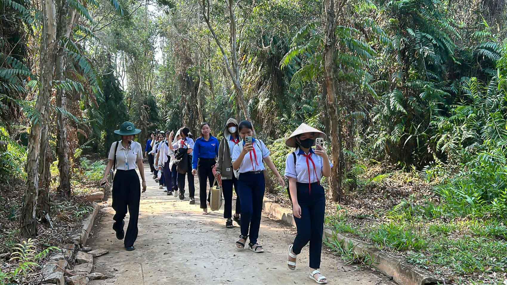 | Học sinh Trường THCS Thị trấn Châu Thành về nguồn tại Khu Căn cứ Tỉnh ủy Sóc Trăng. Ảnh đơn vị cung cấp |