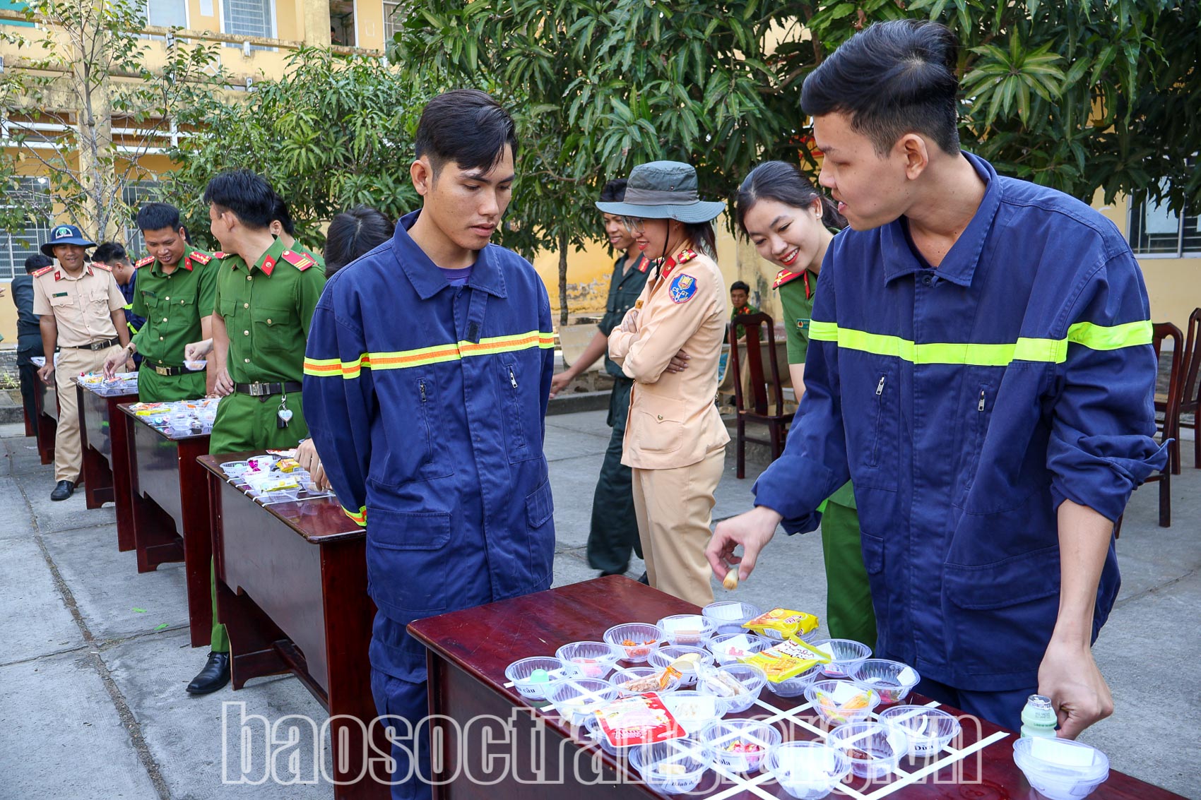 Mở đầu chương trình, Công an tỉnh đã trao tặng 32 phần quà Tết cho đoàn viên, thanh niên có hoàn cảnh khó khăn. Những món quà này thể hiện sự quan tâm của Công an tỉnh dành cho những chiến sĩ nghĩa vụ, mang đến cái Tết ấm áp và nghĩa tình. Với không khí vui tươi và phấn khởi đó, cán bộ đoàn, đoàn viên, thanh niên chụp những bức ảnh lưu niệm. Và sự mong chờ của các bạn trẻ chính là phần liên hoàn trò chơi lớn với chủ đề “Kết đoàn”: kéo co, nhảy dây tập thể, chuyền chanh, bingo, cõng bạn ăn quả, tìm ngọc. Ngoài ra có phần thi đồng diễn dân vũ và giao lưu thể thao môn bóng chuyền. Các trò chơi có tạo sự kết nối các thành viên trong đội, mỗi người cùng đoàn kết và chung sức để giành chiến thắng. Góp thêm không khí xuân, Ban Thanh niên, Ban Phụ nữ Công an tỉnh phối hợp tổ chức hội thi “Gói và nấu bánh tét”.