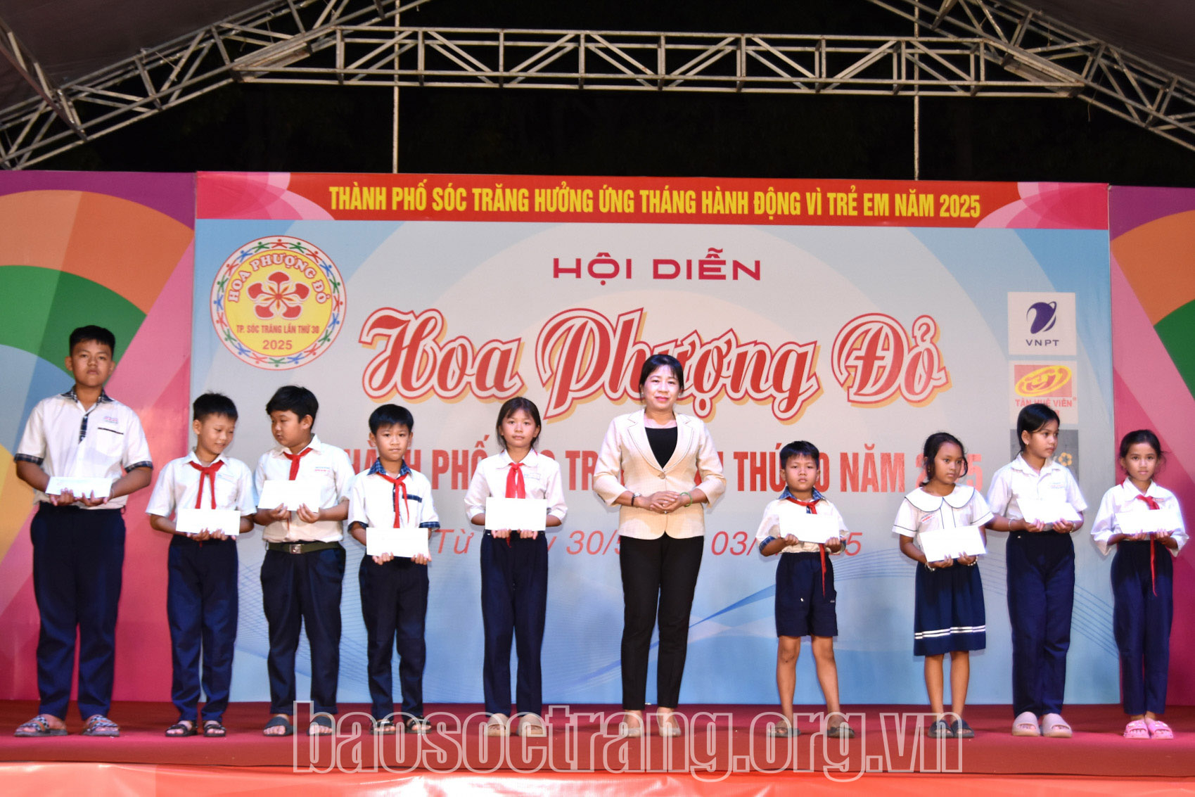 Dịp này, UBND thành phố Sóc Trăng tặng 20 suất học bổng cho các em học sinh có hoàn cảnh khó khăn trên địa bàn thành phố. Ban tổ chức chương trình còn trao giải Hội thi nét cọ vào hè năm 2025.