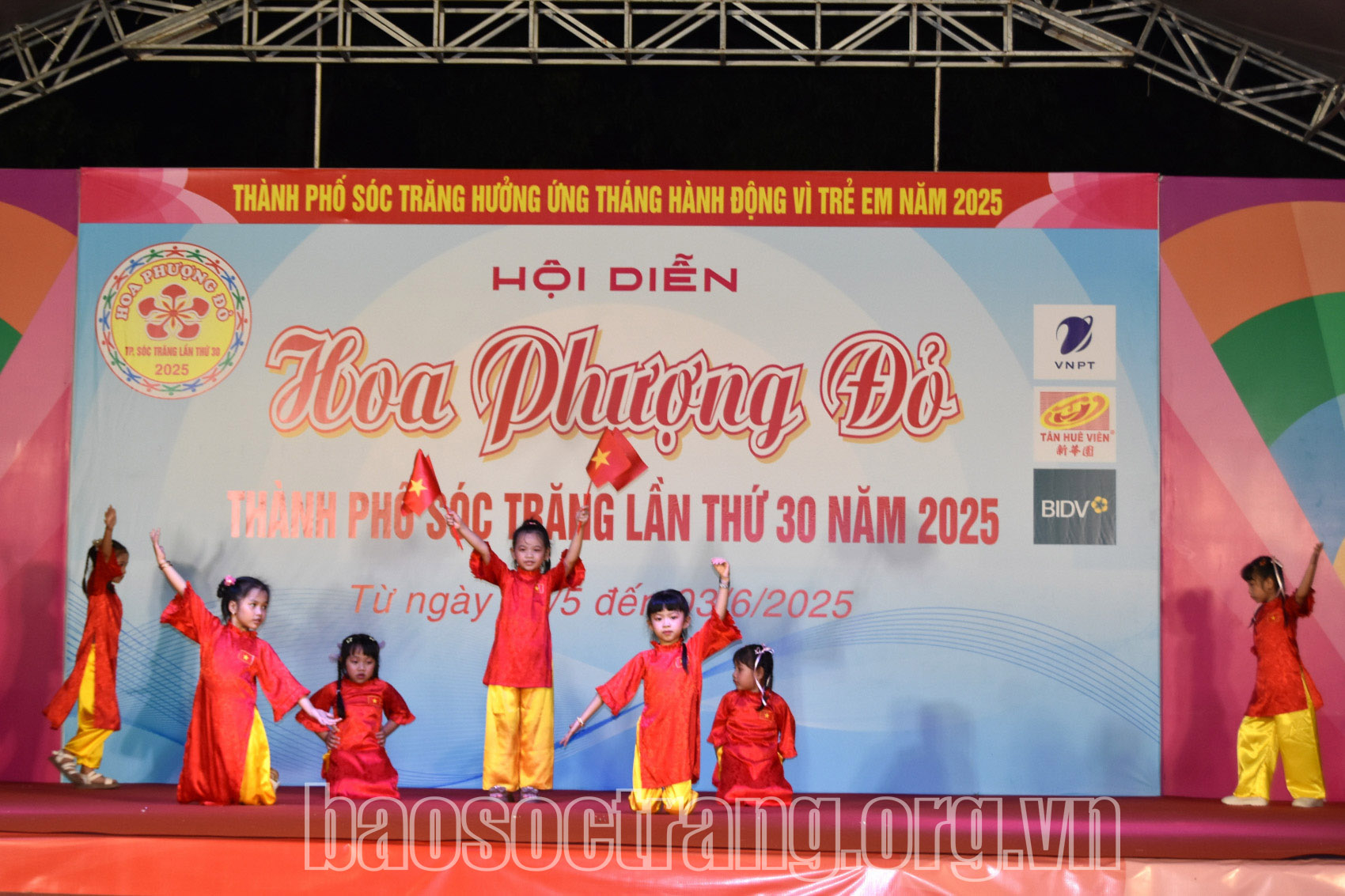 | Một tiết mục tham gia Hội diễn Hoa phượng đỏ thành phố Sóc Trăng lần thứ 30. Ảnh: HUỲNH NHƯ |