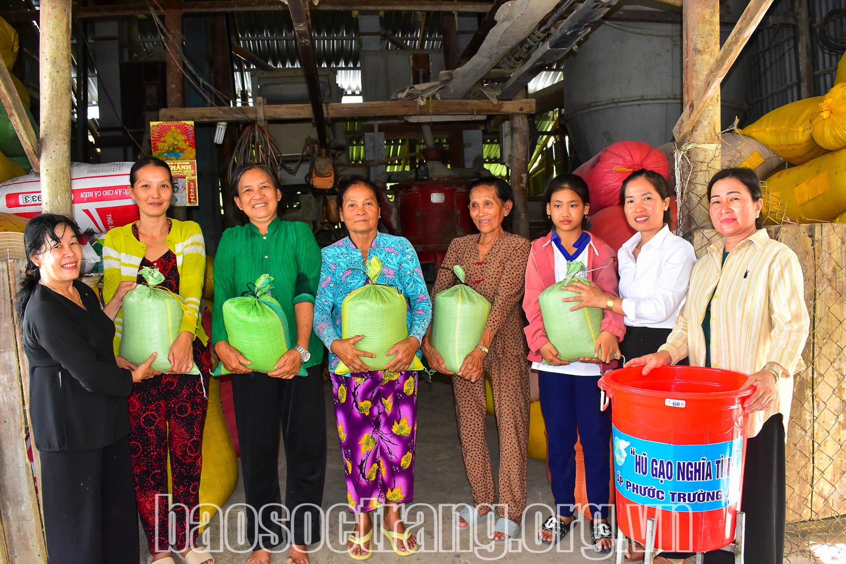 | Tặng gạo cho hội viên, phụ nữ có hoàn cảnh khó khăn thông qua mô hình “Hũ gạo nghĩa tình” của Hội Liên hiệp Phụ nữ xã Mỹ Phước, huyện Mỹ Tú (Sóc Trăng). Ảnh: HUỲNH NHƯ |