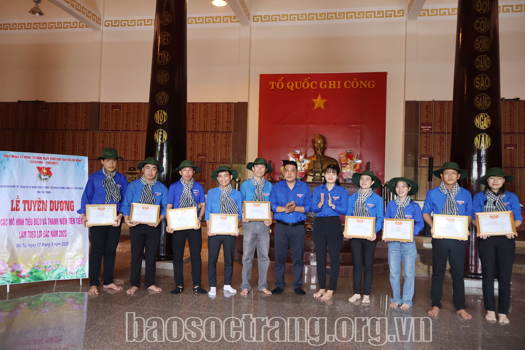 Huyện đoàn Mỹ Tú, Đoàn cơ sở Bệnh viện Đa khoa tỉnh và Chi đoàn Phòng Cảnh sát giao thông cũng tổ chức Lễ tuyên dương các mô hình tiêu biểu và thanh niên tiên tiến làm theo lời Bác năm 2025 tại Khu Căn cứ Tỉnh ủy Sóc Trăng. Theo đó, Huyện đoàn Mỹ Tú đã trao tặng giấy khen cho 2 tập thể và 13 cá nhân, Đoàn cơ sở Bệnh viện Đa khoa tỉnh tặng giấy khen 1 tập thể và 10 cá nhân. Đây là những điển hình có cách làm hay, tiêu biểu trong học tập và làm theo tư tưởng, đạo đức, phong cách Hồ Chí Minh. Cán bộ đoàn, đoàn viên, thanh niên đã cùng nhau ôn lại truyền thống của quê hương Mỹ Phước, tìm hiểu quá trình thành lập Khu Căn cứ Tỉnh ủy Sóc Trăng và những cống hiến, chiến công của thế hệ cha anh trong công cuộc đấu tranh giành độc lập, tự do cho Tổ quốc.