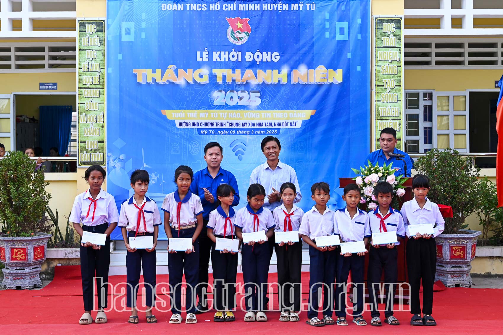 Song song đó, các hoạt động đền ơn đáp nghĩa, tình nguyện vì an sinh xã hội được các cấp bộ đoàn trong huyện triển khai rộng khắp, hướng về các địa bàn đặc biệt khó khăn, vùng có đông đồng bào dân tộc thiểu số. Từ năm 2024 cho đến nay, các cấp bộ đoàn trong huyện đã tổ chức nhiều hoạt động thăm hỏi, tặng quà, khám bệnh, cấp thuốc miễn phí, hỗ trợ xây dựng nhà ở cho các đối tượng khó khăn… Kết quả, các cấp bộ đoàn đã hỗ trợ xây dựng 3 căn nhà, xây dựng công trình Sân chơi cho trẻ em tại Trường Mầm non Mỹ Hương, kiên cố hóa sân trường tại Trường Tiểu học Hưng Phú A. Đồng thời tặng trên 1.000 phần quà, khám, phát thuốc miễn phí cho trên 150 lượt người, tặng trên 60 chiếc xe đạp, 120 suất học bổng cho các đối tượng chính sách, người dân, học sinh có hoàn cảnh khó khăn. Thông qua các hoạt động đã góp phần giáo dục, định hướng lối sống đẹp, sống có ích cho đoàn viên, thanh niên, phát huy vai trò, trách nhiệm của tuổi trẻ đối với cộng đồng, xã hội.